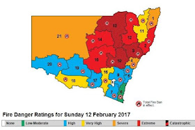 Towards the end of the day, the NSW Rural Fire Service started warning of catastrophic or code red conditions in some parts of NSW. Code red conditions stretch from the Hunter Valley up the Western Slopes.